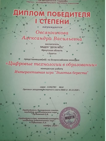 3. Стаж в образовательной организации: МБДОУ "ДСОВ №31" с 2018года